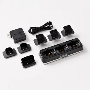 The BarberStation Essentials – Magic Clip Pro Kit combines four of Wahl’s top professional tools for flawless fades, detailing, and finishing. It includes the 5 Star Cordless Magic Clip with Stagger-Tooth blade and 5,700 RPM motor, the A•LIGN Trimmer with zero-gap T-blade and 7,000 RPM motor, and the 5 Star Shaver/Shaper with gold hypoallergenic foils for ultra-close, bump-free finishes. The included Power Station charges up to three cordless tools at once, keeping your station organized. With high-performance motors, cordless freedom, and convenient charging, this kit delivers precision, efficiency, and professional-grade results for every barber or stylist.
