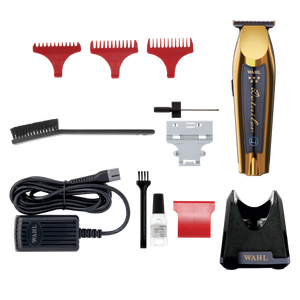 La tondeuse sans fil Magic Clip® 5 Star Gold s'appuie sur le design légendaire de la Magic Clip® et propose un moteur plus puissant et des lames avancées pour des dégradés impeccables. La lame brevetée Stagger-Tooth™ élimine les lignes de démarcation, tandis que la technologie Crunch Blade™ offre un retour sonore pour des dégradés parfaits à chaque coupe. Grâce à ses lames en titane et revêtement DLC, cette tondeuse reste froide, résiste à la corrosion et offre une puissance exceptionnelle pour tous les types de cheveux, même mouillés, épais ou texturés. Son design ergonomique et sa finition dorée, associés à un socle de charge lesté, font de cette tondeuse un outil de choix, mais aussi un gage de qualité et de savoir-faire.La tondeuse Cordless Detailer® Li Gold est dotée d'une lame large en T avec revêtements titane et DLC pour une coupe plus durable, résistante à la corrosion et sans surchauffe. Dotée d'une lame réglable pour une coupe de très près, elle offre plus de 100 minutes d'autonomie avec une charge complète et est livrée avec un socle de charge lesté compact avec LED de charge intelligente. Idéale pour le traçage, la coupe et le détail des poils du visage, cette tondeuse de fabrication américaine est alimentée par un moteur de tondeuse standard, garantissant une performance optimale sur tous les types de poils. L'outil Pro-Set permet de couper les lames sans espace. Le kit comprend tout le nécessaire pour démarrer : 3 guides de coupe, un cordon d'alimentation, un socle de charge, des outils de nettoyage, de l'huile, un protège-lame rouge, et bien plus encore.