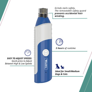 Le Wahl La ponceuse à griffes Flexion est conçue pour les propriétaires d'animaux à la recherche d'un moyen sûr et efficace d'entretenir les griffes de leurs compagnons. Son moteur à deux vitesses permet un toilettage personnalisé, tandis que les faibles vibrations garantissent une expérience sereine à votre animal. La ponceuse est dotée d'un capuchon de sécurité transparent pour éviter les coupes excessives et réduire la poussière. Sa conception compacte et légère la rend facile à manipuler, notamment pour les petits animaux ou les débutants en toilettage des griffes.