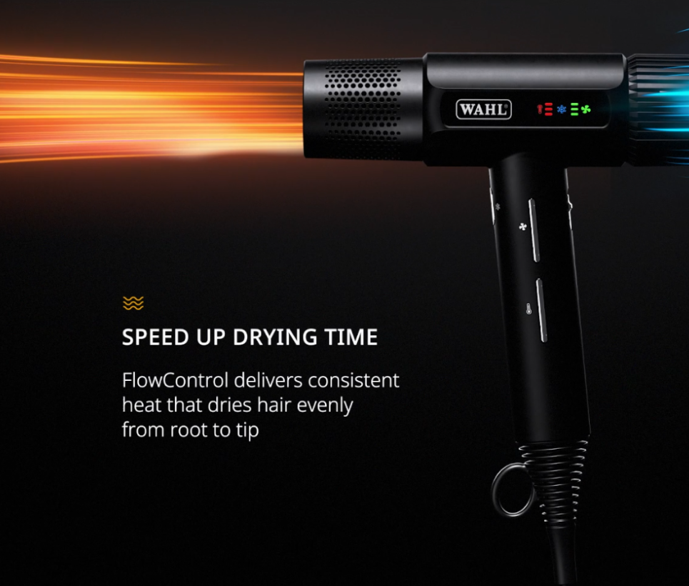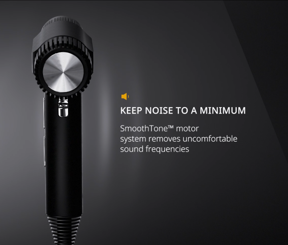 The WAHL Vanquish hair dryer uses a SmoothTone™ motor system that reduces uncomfortable sound frequencies, making it quieter than many traditional models.