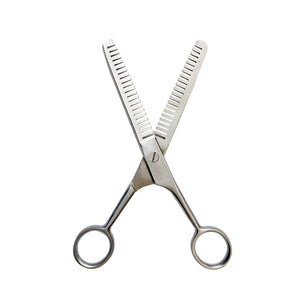 High quality stainless steel thinning scissors, designed to remove and reduce bushy areas from your pet’s coat.