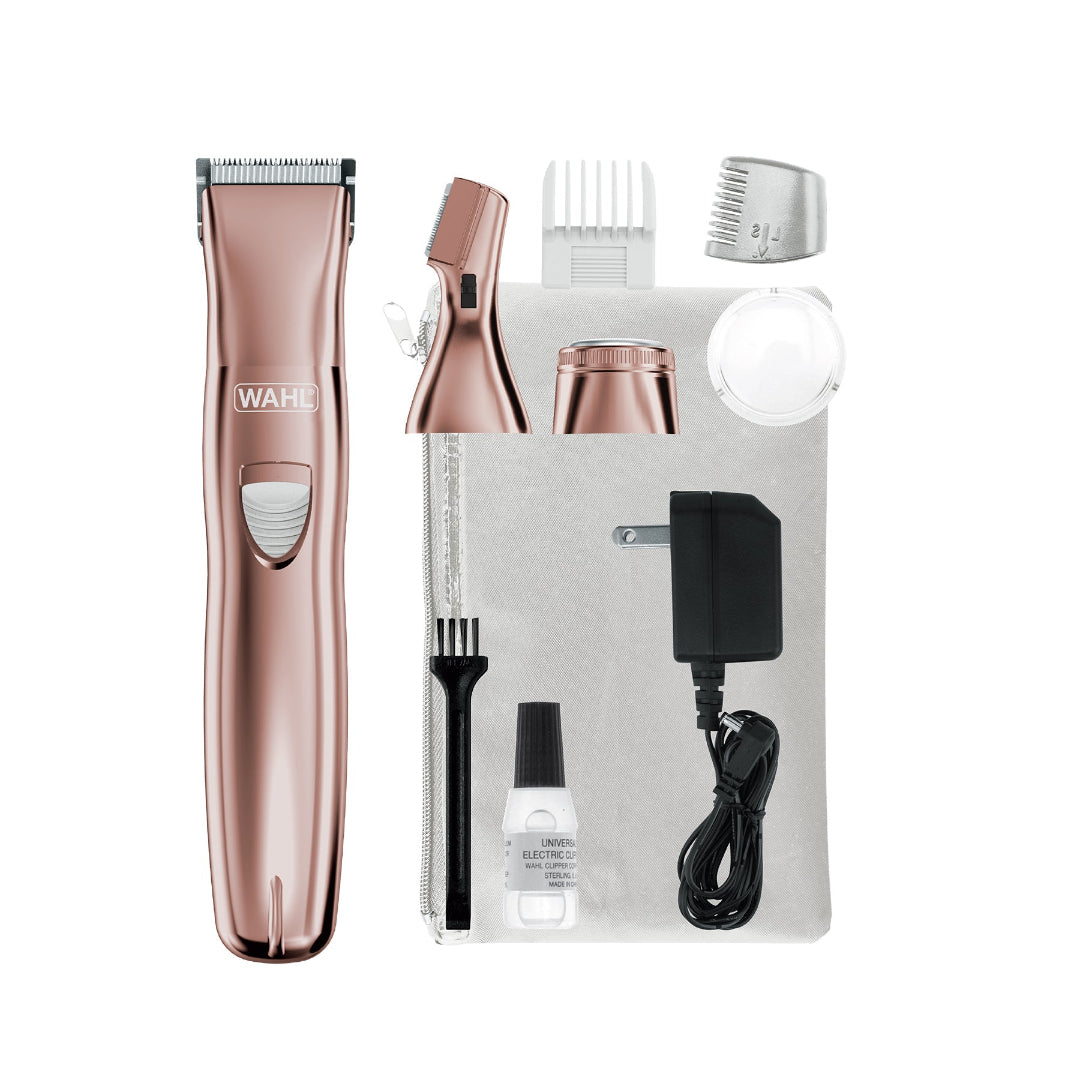 This sleek, rechargeable lady’s trimmer features 3 interchangeable heads: rotary facial shaver, precision trimmer and a precision detailer. Gentle, no irritation grooming - Ideal for removing facial hair, peach fuzz, trimming underarm hair, maintaining bikini lines and shaping eyebrows. Complete Kit – Also includes a 5-position guide comb to maintain the bikini areas, 2-position eyebrow guide for even lengths, storage pouch, charger, protective cap for shaver head, blade oil, cleaning brush and instructions.