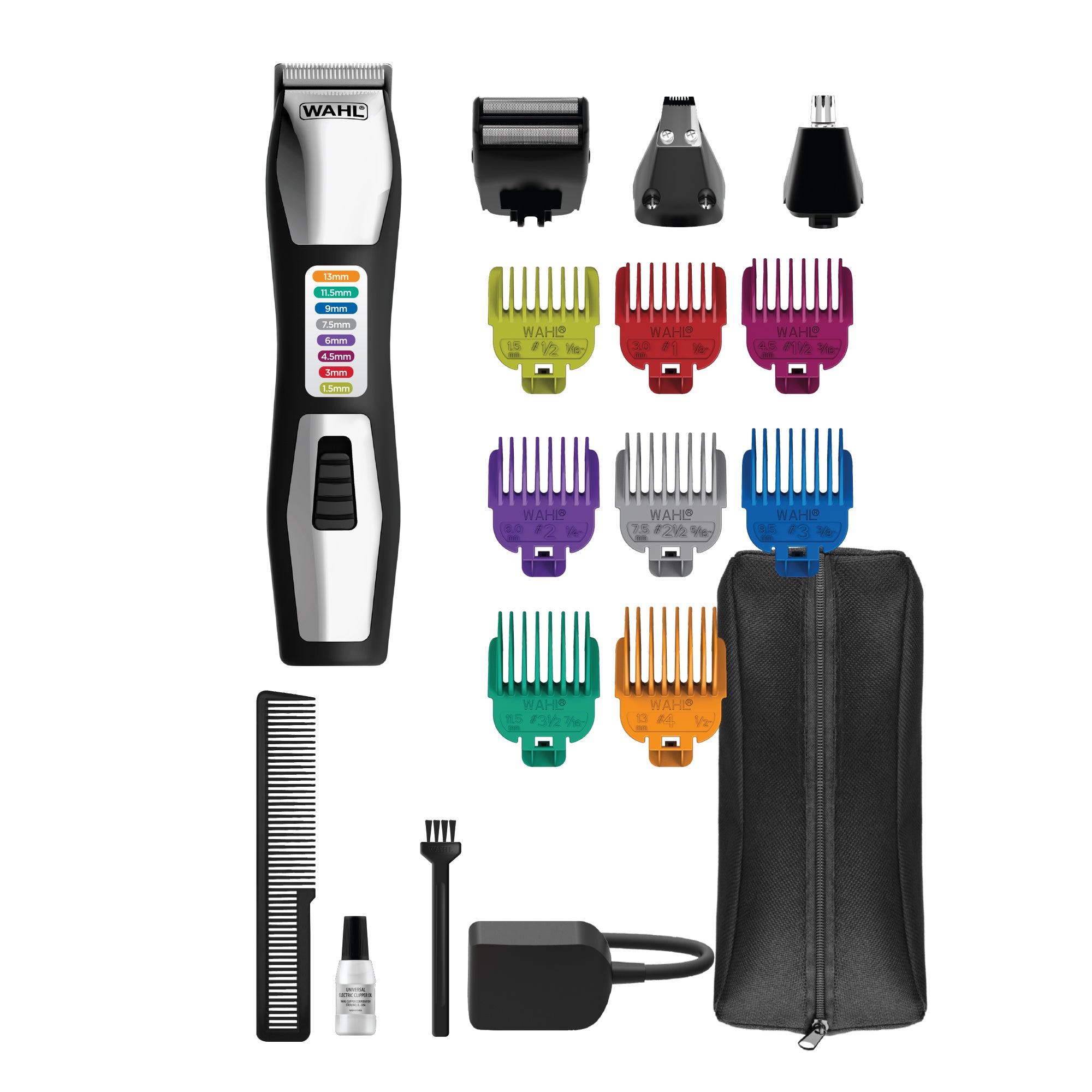 This trimmer includes Wahlโs popular color-coded guide combs so you can match your desired cutting length to the right comb.