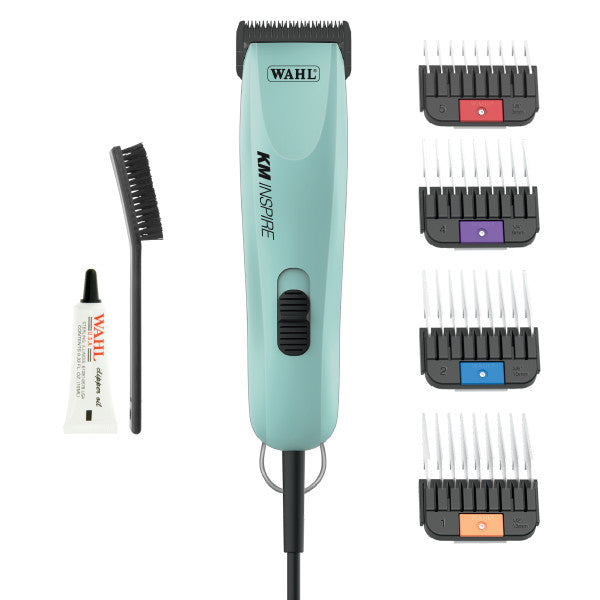 Wahl's KM Inspire™ is the ideal clipper for beginner groomers. Engineered with a brushless motor and corded power, the KM Inspire™ runs cooler and lasts longer to avoid overheating during longer grooms. Our innovative constant speed control technology allows you to power through all coats types by maintaining cutting speed and torque, even in the toughest areas. An ergonomic and lightweight body reduces hand and wrist fatigue, offering complete comfort for extended use. With two speeds (3,000 SPM and 3,600 SPM), easily switch from high-to-low for trims and full-body grooming. The KM Inspire™ is a must-have clipper as a new groomer, as it keeps both you and the animal's you're grooming comfortable