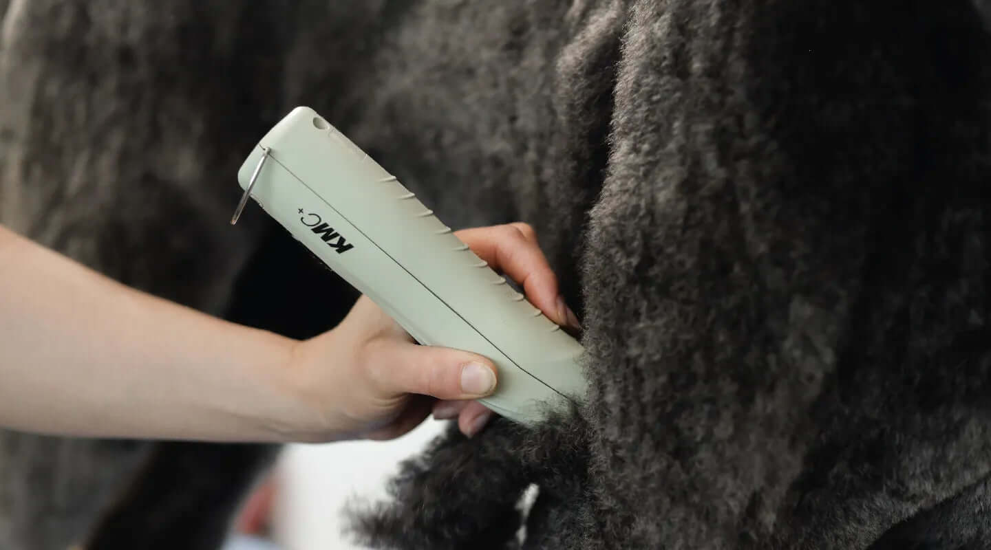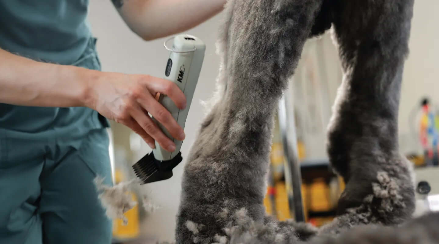 The cordless hair clippers for dogs feature a lightweight, balanced build with a textured ergonomic housing to reduce hand and wrist fatigue.