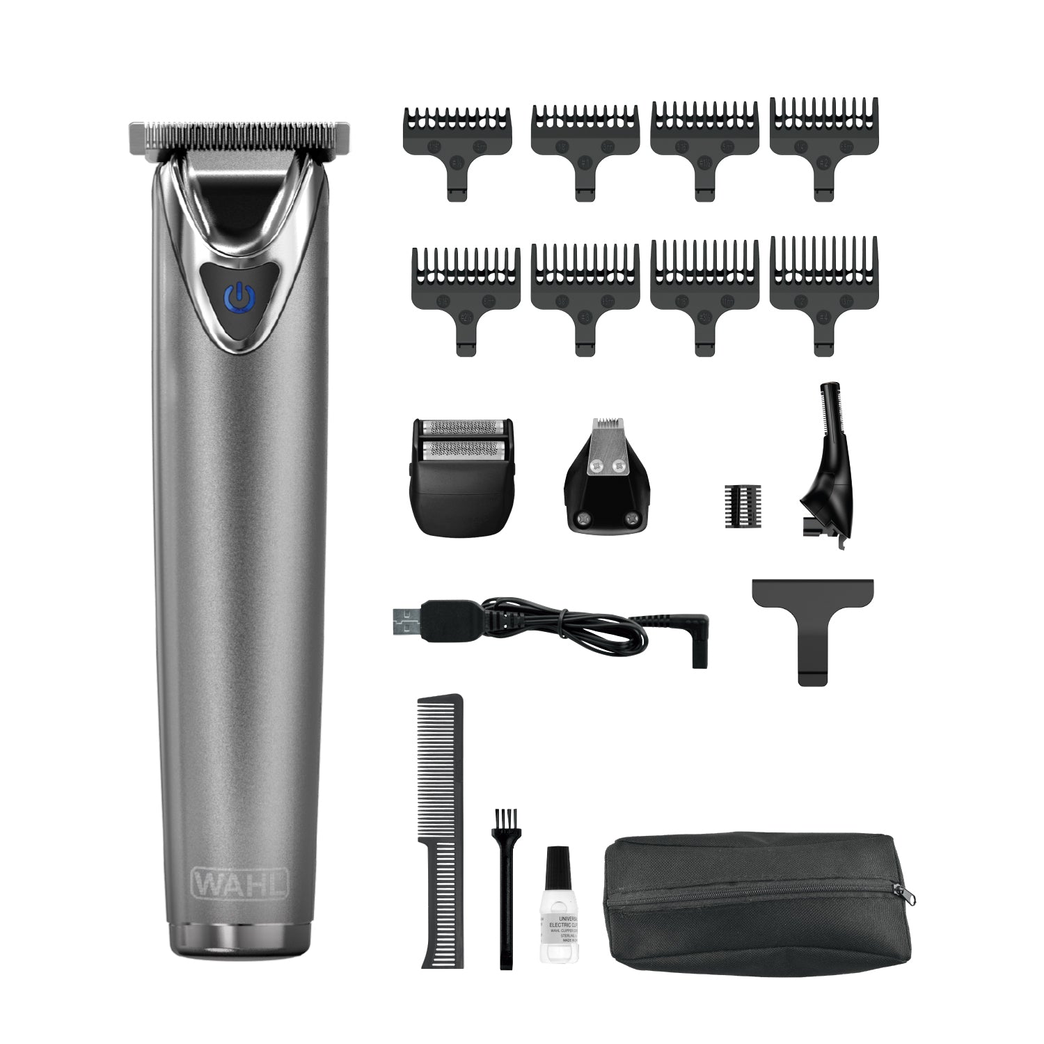 Consists of lithium‐Ion technology that provides a 3.5‐hour runtime on a 1‐hour charge and a 1‐minute quick charge for 3 minutes of usage. Ready to go with worldwide voltage. Use the T‐Blade head for grooming, the dual shaver for close shaves, and the ear/nose head for fine detailing. To achieve even beard trimming, simply attach any of the 8 Elite guide combs.