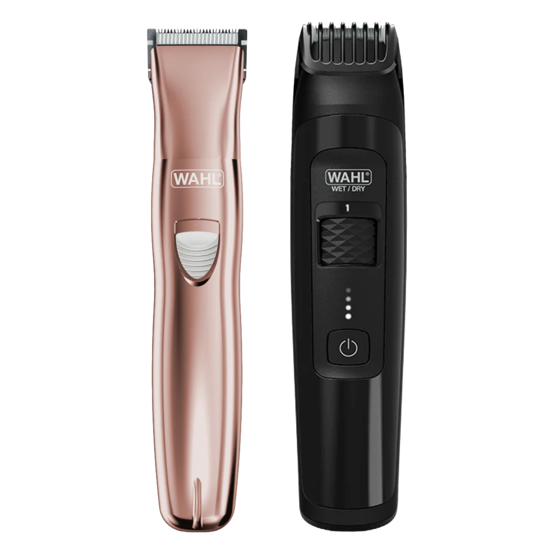 The Total Grooming Pair is the ultimate grooming set, designed for full-body hair grooming with precision and safety. This duo includes the Wahl Manscaper® Body Groomer, built for below-the-belt and full-body trimming, and the Clean & Smooth™ Ladies Grooming Kit, engineered for gentle, irritation-free hair removal.